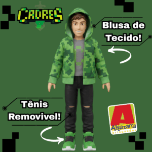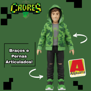 Com 22cm de altura e 9 pontos de articulação, ele é inspirado no personagem famoso da internet, cheio de estilo e pronto para viver grandes aventuras! Ideal para brincar, colecionar ou presentear.