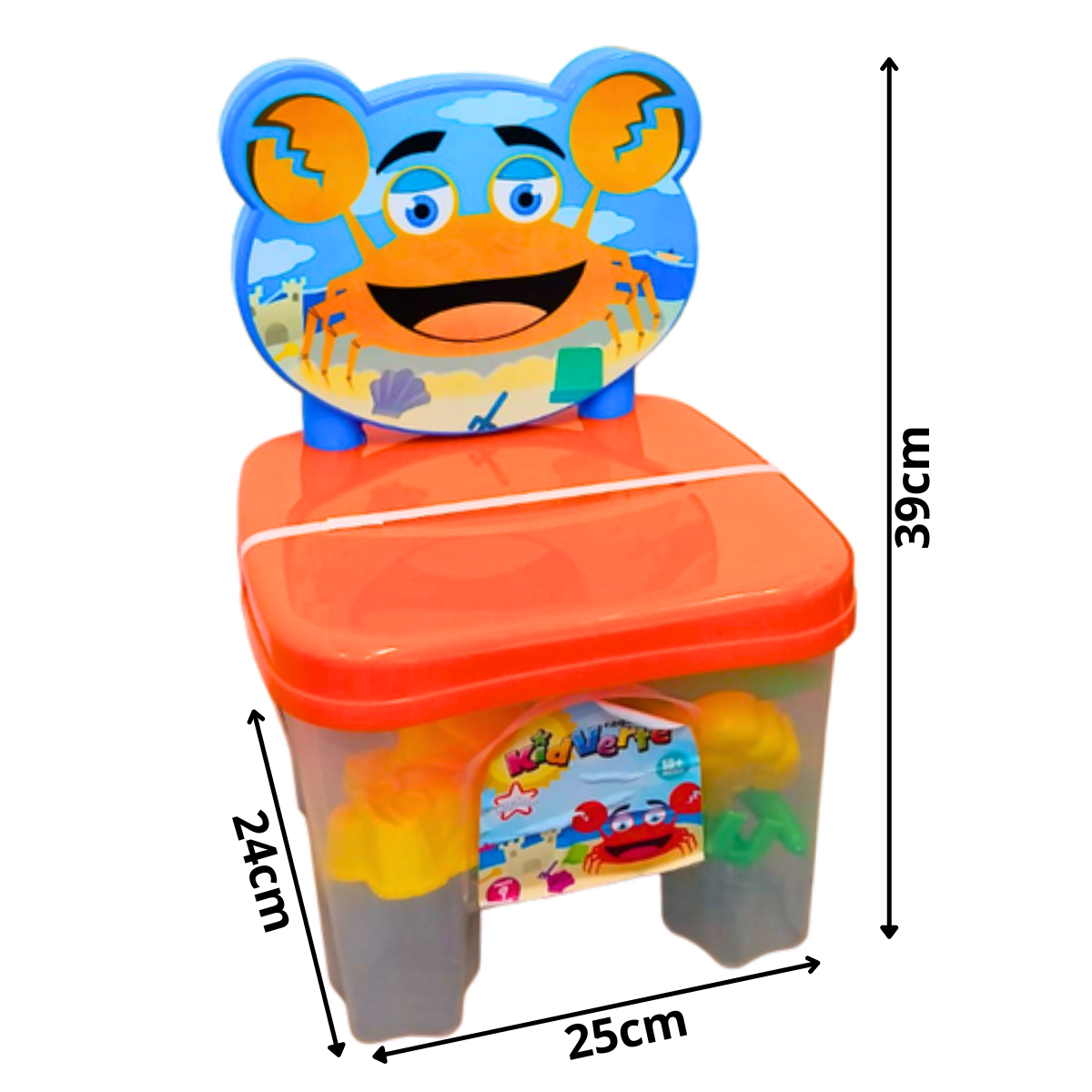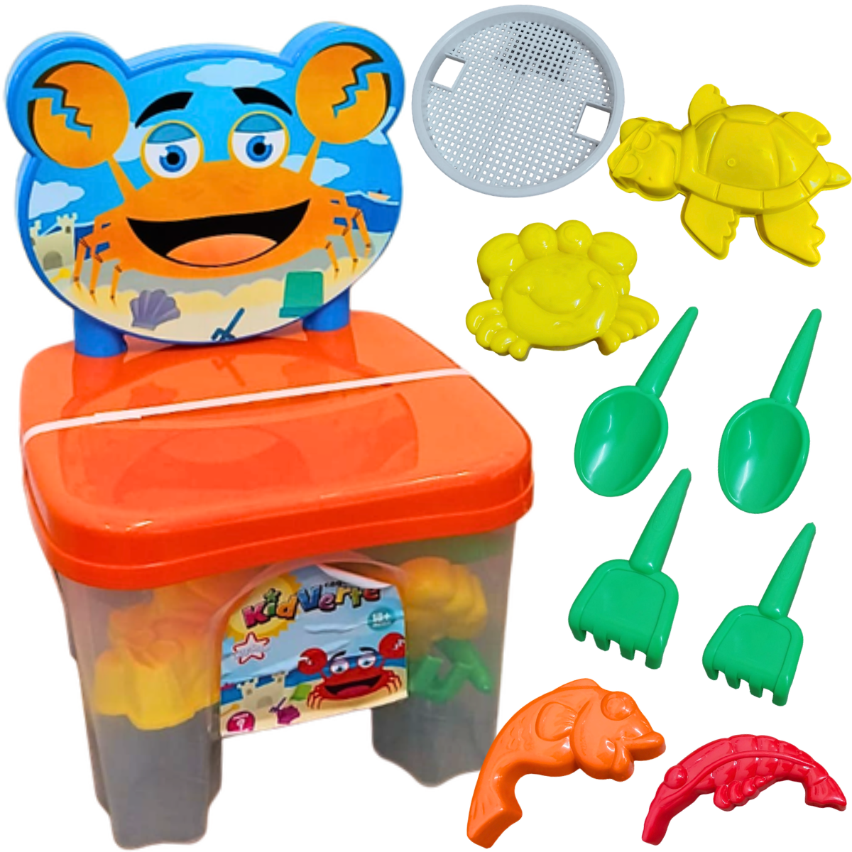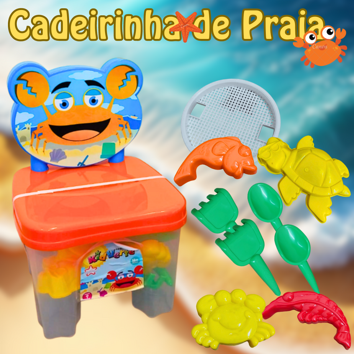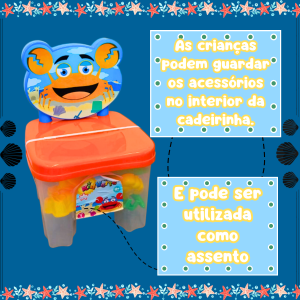 Os dias de praia com certeza são mais divertidos com a cadeirinha kidverte praia ! Seu pequeno vai poder construir castelos de areia e se divertir. Essa cadeirinha contém vários acessórios (Cores Sortidas) para o pequeno poder usar sua imaginação e brincar com seus amiguinhos na praia. Acompanha rastelo, pazinha, forminhas em formato de animais, peneirinha e vira um lindo assento.