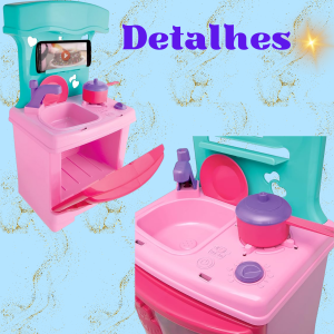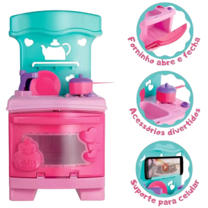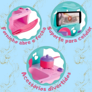 Uma das brincadeiras preferidas das meninas é brincar de casinha. E agora, com a Cozinha Sonho de Menina Sweet Fantasy da Cardoso veio para complementar a diversão da criançada. Com seu designer diferenciado, todo estiloso e moderno, possui coifa decorativa, mais cooktop com botão e relevo, pia com torneira, escorredor de pratos, forno abre e fecha, panelas, pratos e talheres, e ainda uma novidade, possui suporte para celular, assim as crianças podem acompanhar suas receitas preferidas e brincar fazendo igualzinho.