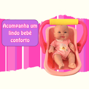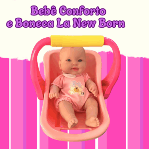O bebe conforto traz junto uma bonequinha que adora passear. A boneca La New Born tem como diferencial o corpinho de vinil macio, cheirosa e pode acompanhar sua pequena no banho!!