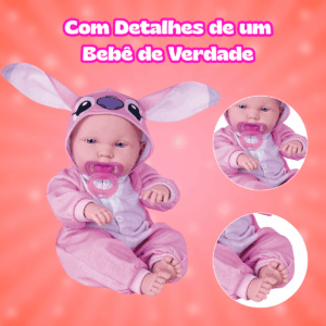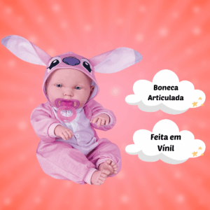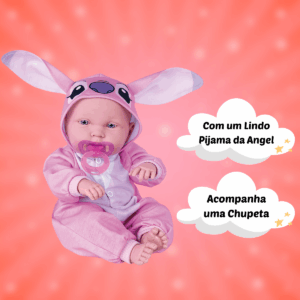 Boneca feita em vinil, com corpo articulado e detalhes que lembram um bebê de verdade, como as dobrinhas e o rostinho delicado. Acompanha um pijaminha fofo da Angel e uma chupeta. Tem tamanho ideal para segurar no colo e brincar de cuidar. Perfeita para crianças que gostam de bonecas com jeitinho de bebê ou para quem quer aumentar a coleção com muito charme e carinho.