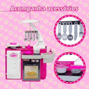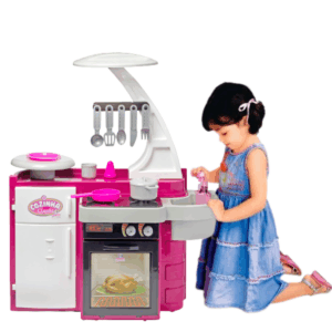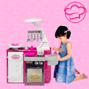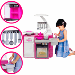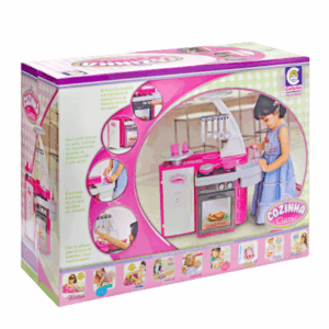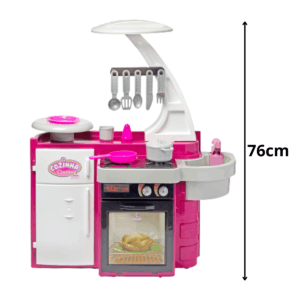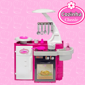 COZINHA CLASSIC Uma linda e completa cozinha, as meninas vão adorar brincar de assar, cozinhar, e até lavar suas louças! Vem com diversos acessórios que deixarão a brincadeira ainda mais emocionante e divertida. Sai água de verdade para lavar as louças! Aporta do forno abre para brincar de fazer assados e outras delícias. A portinha da geladeira também abre e fecha! CONTÉM: – 01 Fogãozinho – 01 Forno – 01 Pia – 01 Geladeira – 01 Porta-talher – 01 Bandejinha – 01 Prato – 01 Frigideira – 01 Panela com tampa – 05 Talheres de cozinha – 01 Copo – 01 Saleiro. CARACTERÍSTICA: – Marca: Cotiplás – Material: Plástico – Idade Recomendada: Maiores de 3 anos – Utiliza Pilha: Não DIMENSÕES DO PRODUTO: Altura: 76,0(cm) DIMENSÕES DA EMBALAGEM: Altura: 39,0(cm), Largura: 23,0(cm) e Comprimento: 54,0(cm) CERTIFICAÇÃO: INMETRO CE-BRI/0228 NM 300/2002