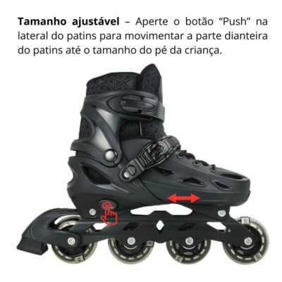 PATINS INLINE AJUSTAVEL COM LUZ NAS RODAS BLACK