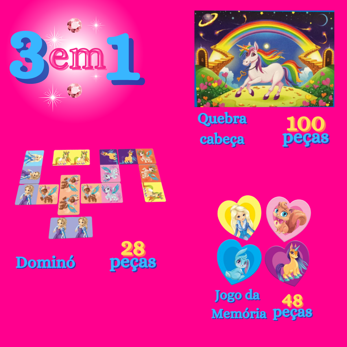 3 JOGOS EM 1 SONHO DE PRINCESA-QC/ MEMORIA/ DOMINO 1025