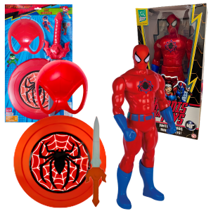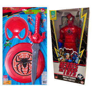 Com esse kit as crianças vão se sentir verdadeiros guerreiros. Conta com uma espada de 42 centímetros, um escudo de 26 centímetros com uma fivela de plástico na parte interna para segurar, e uma máscara com elástico para prender. Fabricadas com materiais de qualidade, possui um ótimo acabamento e são super resistentes. Podem ser usados para brincar ou até mesmo como parte de fantasias para festas. Acompanha também o boneco Aracmiano um super herói valente. Juntos com este incrível kit somos mais fortes, use a imaginação e crie histórias incríveis.