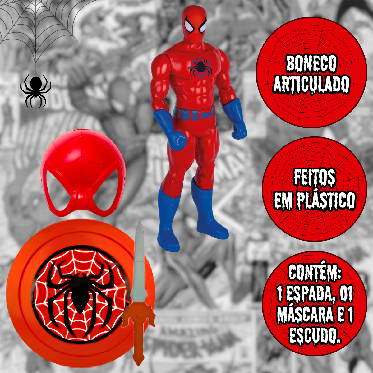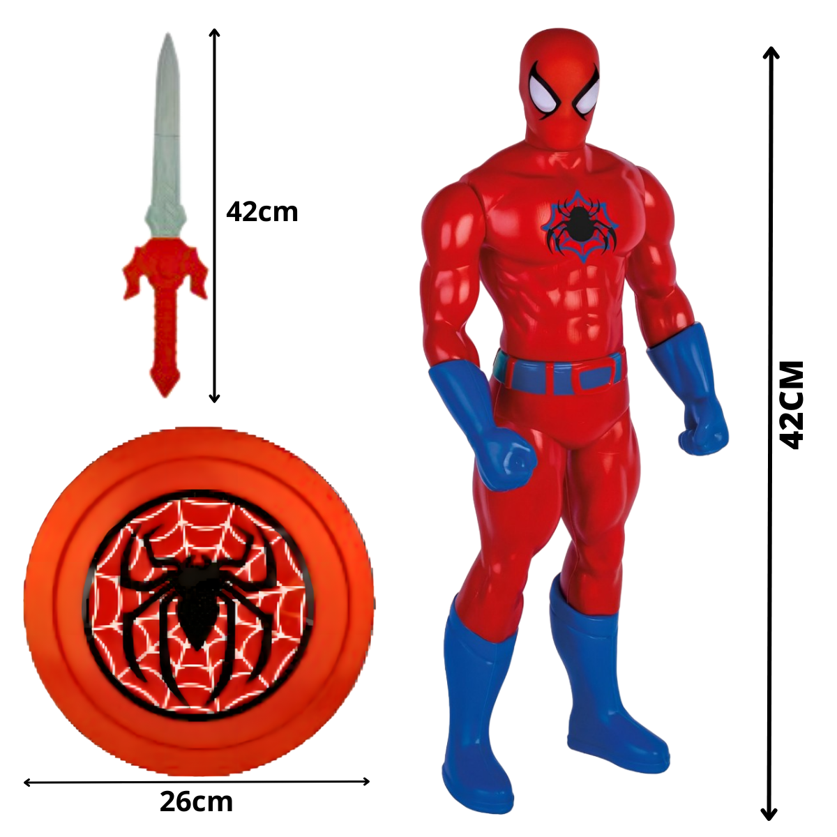 DIMENSÕES DO PRODUTO: Espada: 42cm. Escudo: 26cm. Boneco: 42cm.