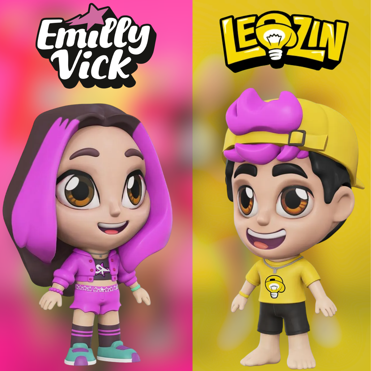 Este adorável Kit com 2 Bonecos da nova coleção da Algazarra traz os personagens mais queridos da Turma dos Rosa: a charmosa Emily Vick e o divertido Leozinho.