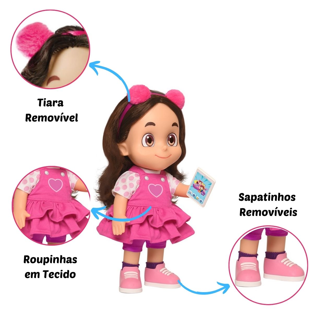 Chegou a mais nova boneca da Maria Clara. Essa linda boneca é articulada e vem com um celularzinho de brinquedo e um belo vestido rosa.