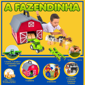 FAZENDINHA POLIPLAC A fazendinha Poliplac é ideal para brincar e aprender de forma lúdica a rotina da fazenda! Com abertura do telhado, esse design permite que as crianças explorem e brinquem dentro do celeiro enquanto “espiam” pelo telhado. Facilitando as brincadeiras tanto dentro quanto fora, proporcionando uma experiência dinâmica e imaginativa para os pequenos fazendeiros! De animais a ferramentas agrícolas, cada elemento foi cuidadosamente incluído para proporcionar uma experiência completa de brincadeira rural. Dentro do celeiro, as crianças podem explorar um mundo encantador, interagindo com animais e ferramentas que tornam a experiência ainda mais envolvente. CONTÉM: 01- Celeiro; 01- Trator; 01- Arado; 01- Carretinha; 01- Picareta; 01- Enxada; 01- Pá; 01- Rastel; 10- Un. de Feno; 02- Bonecos; 02- Vaquinhas; 02- Cavalos; 02- Bezerros; 02- Cochos; 12- Módulos de cerca. CARACTERÍSTICAS: – Marca: Poliplac. – Material: Plástico. – Idade Recomendada: +3 anos. – Utiliza Pilhas: Não. DIMENSÕES DA EMBALAGEM: Altura: 40cm, Largura: 38cm e Comprimento: 39cm. CERTIFICAÇÃO: REGISTRO 005341/2021