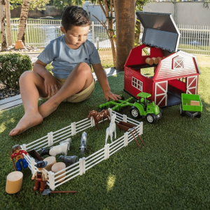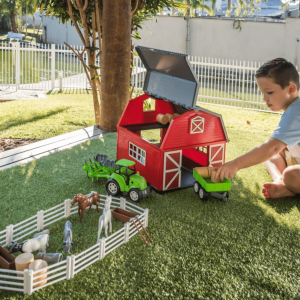 A fazendinha Poliplac é ideal para brincar e aprender de forma lúdica a rotina da fazenda! Com abertura do telhado, esse design permite que as crianças explorem e brinquem dentro do celeiro enquanto “espiam” pelo telhado. Facilitando as brincadeiras tanto dentro quanto fora, proporcionando uma experiência dinâmica e imaginativa para os pequenos fazendeiros! De animais a ferramentas agrícolas, cada elemento foi cuidadosamente incluído para proporcionar uma experiência completa de brincadeira rural. Dentro do celeiro, as crianças podem explorar um mundo encantador, interagindo com animais e ferramentas que tornam a experiência ainda mais envolvente.