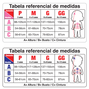G – Veste: 6 a 8 anos;