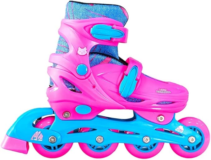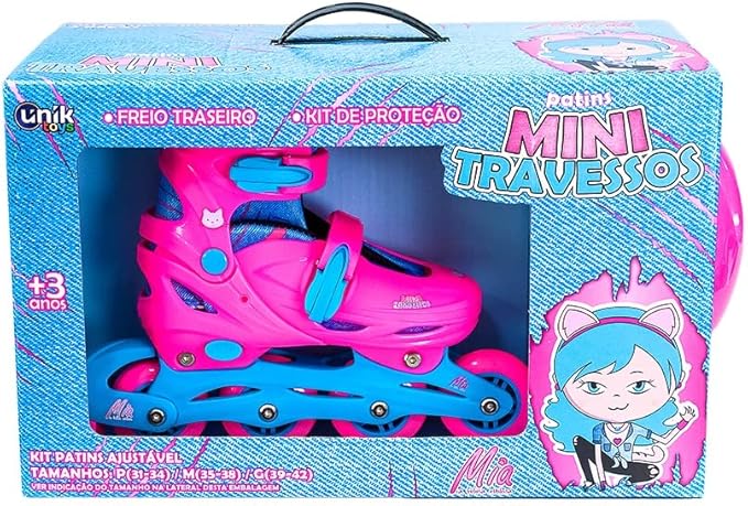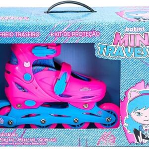 UNIK-KIT PATINS MINI TRAVESSOS FEMININO ROSA 31 34 C/ EQUIPAMENTOS PROTEÇÃO